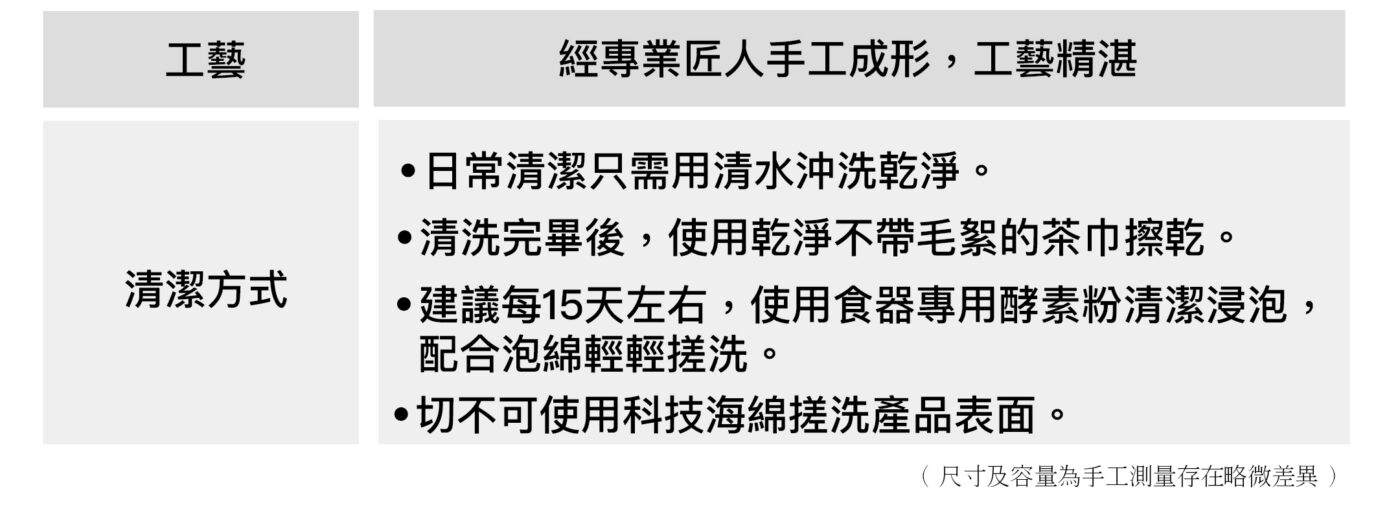 ★ 質感晶瑩剔透,永保如新不留茶垢,清水清洗即可。