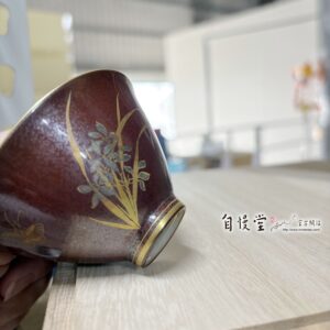 鐵鏽紅 大盞杯 描金蘭花 (主人杯)